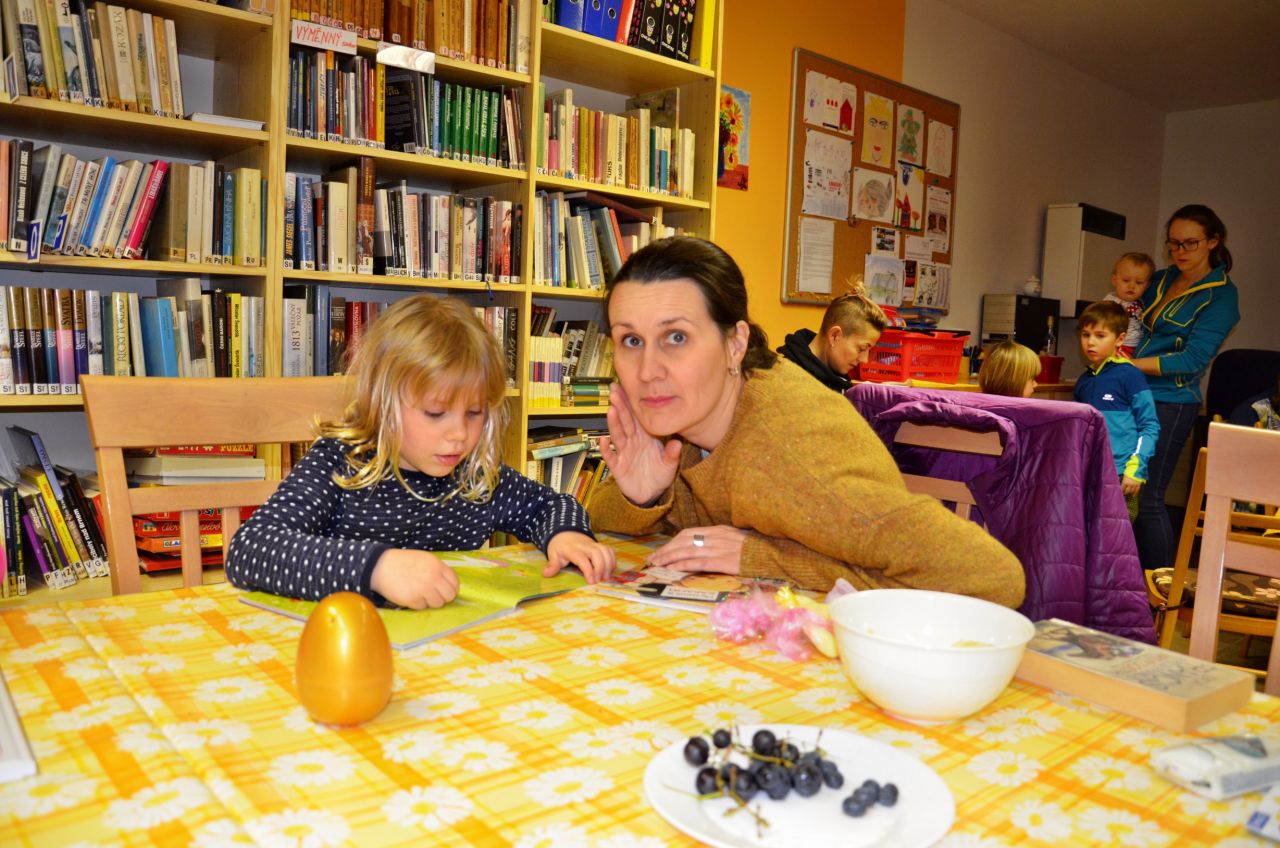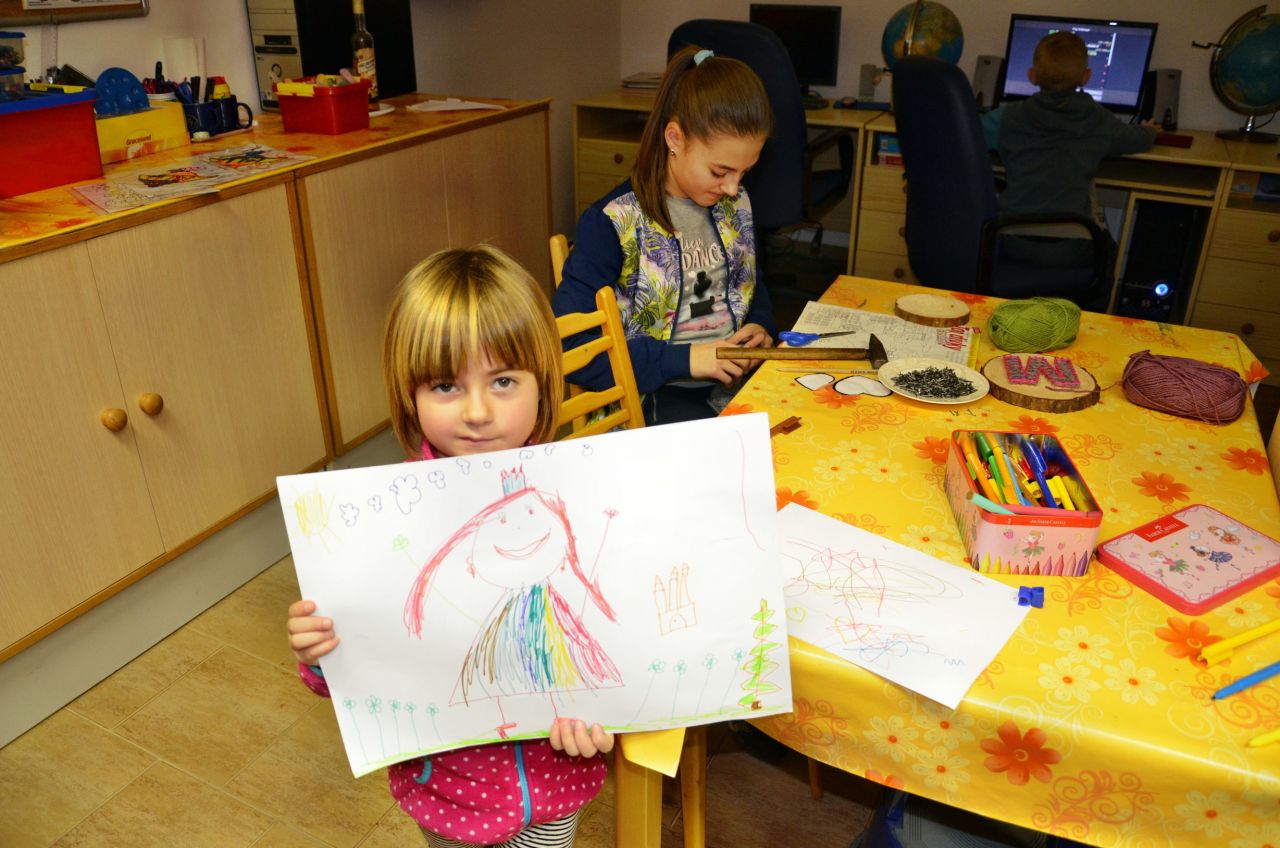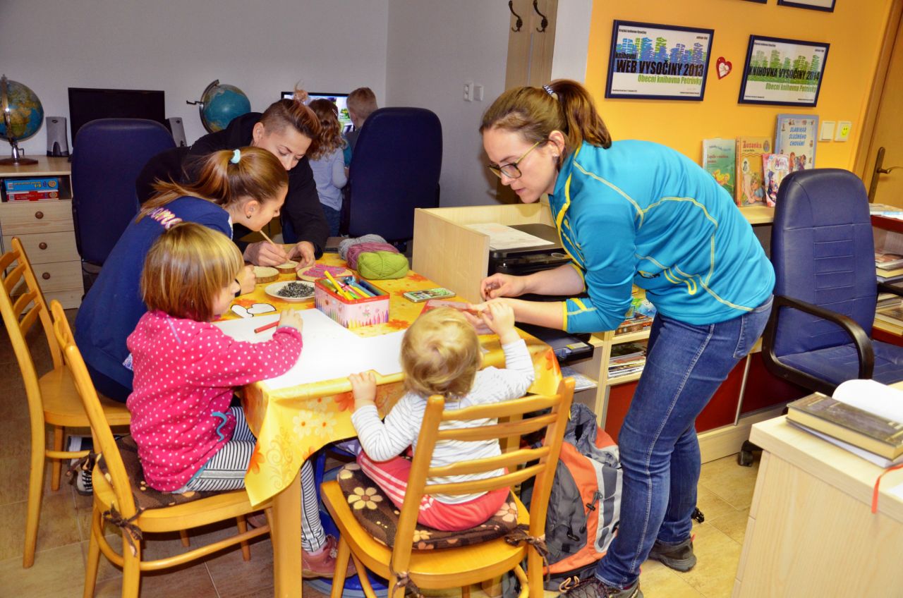 Některé děti současně malovaly nebo si pak tvořily obrázky za pomoci barevné vlny a zatloukacích hřebíků do dřevěných kulatých podložek. Pro návštěvníky bylo připraveno malé pohoštění.