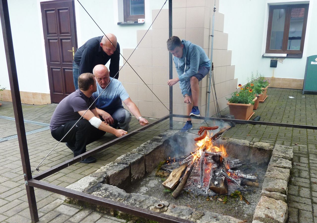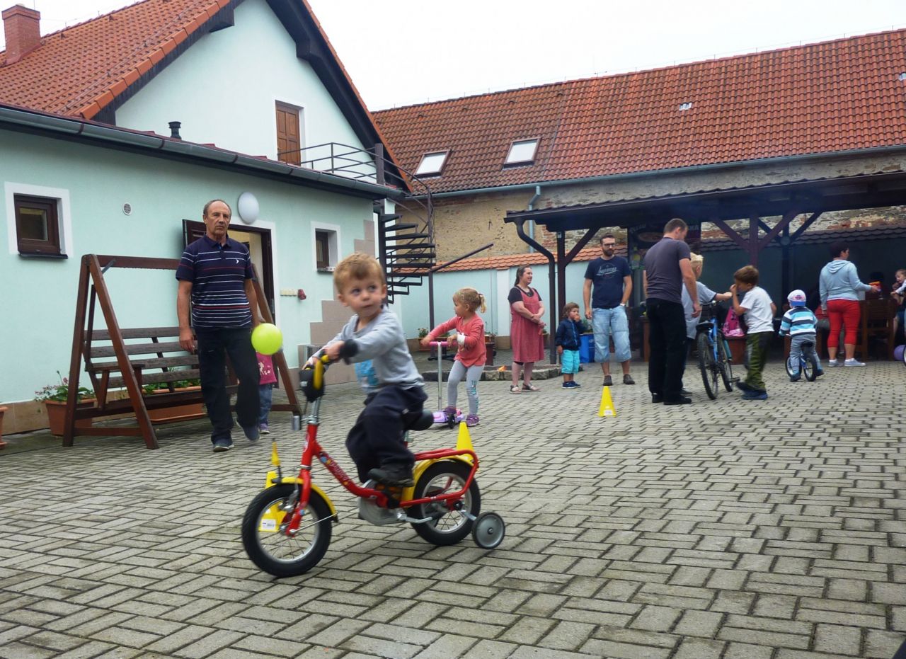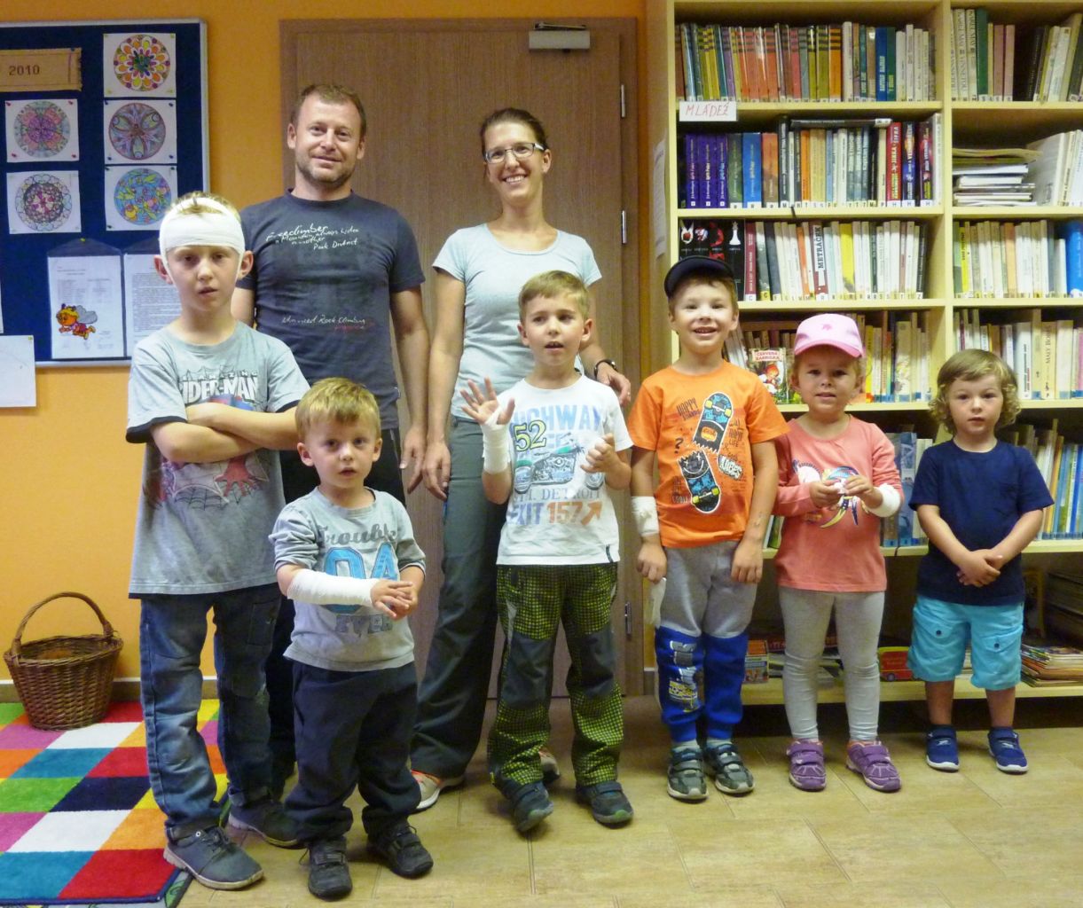 Díky deštivému počasí se první část programu uskutečnila v knihovně. Paní doktorka Jana Šlapáková seznámila děti (i dospělé) se základy první pomoci formou modelových situací, které předvedla spolu se svým malým asistentem Matýskem. Poté měly děti za úkol namalovat obrázek libovolného zvířete a z výkresů vznikla malá výstavka. K občerstvení bylo připraveno čerstvé ovoce, různé sladkosti a limonády. Venku u ohně si každý z účastníků mohl opéct výbornou klobásku. Ve dvoře pak probíhaly nejrůznější aktivity jako například malování křídami, slalom na kolech nebo malý fotbálek. Nejmenší děti se mohly vyřádit na nových houpadlech. Ve finále hledaly všechny děti ty správné klíče k zamčenému pokladu, což se jim nakonec podařilo. A jak je vidět z fotografií, zábavné odpoledne ke Dni dětí se vydařilo i navzdory uplakanému počasí. J.K.