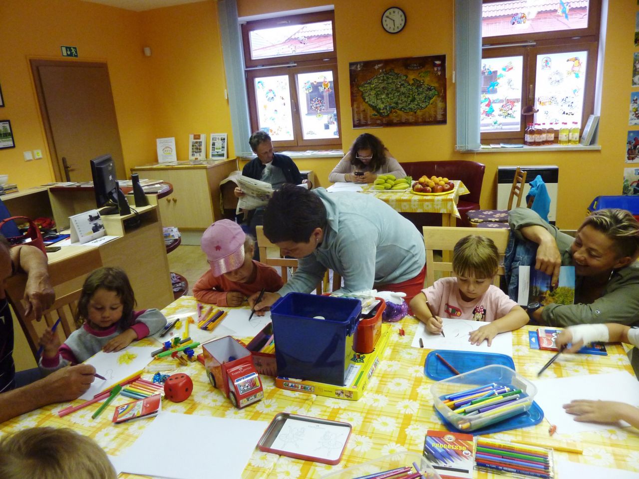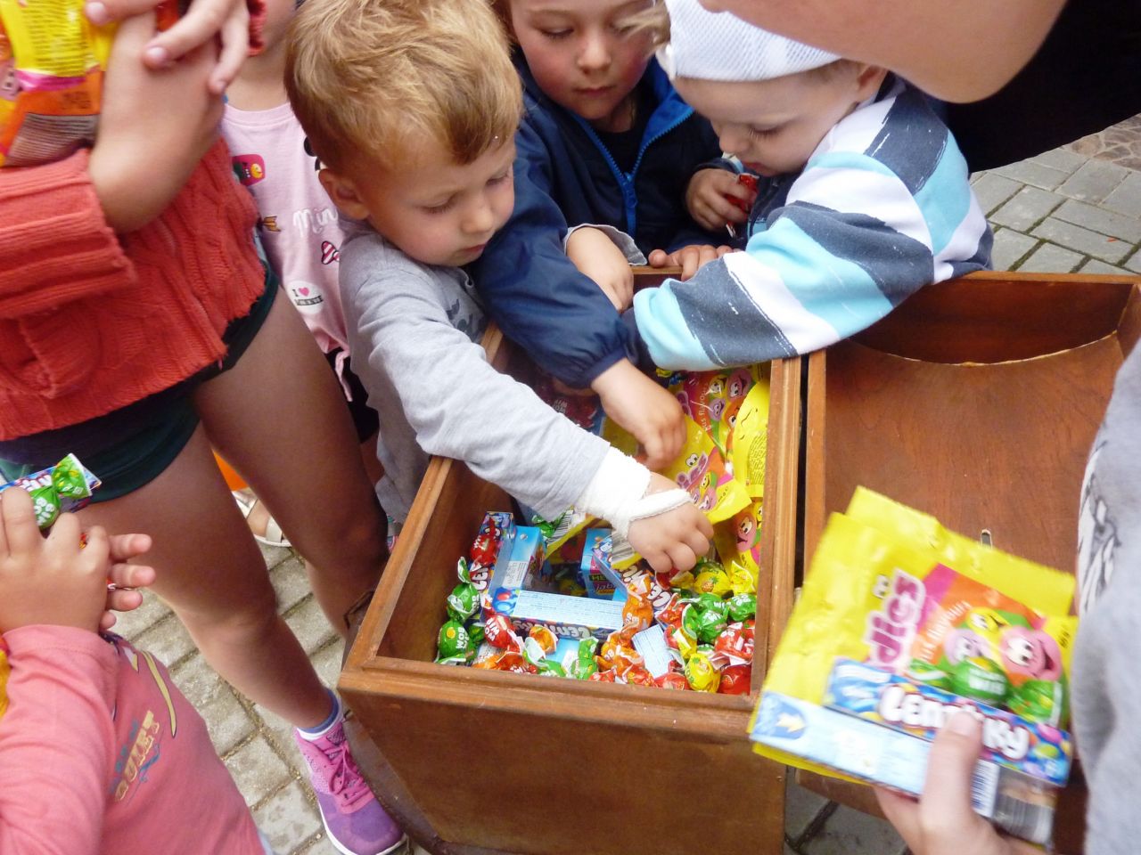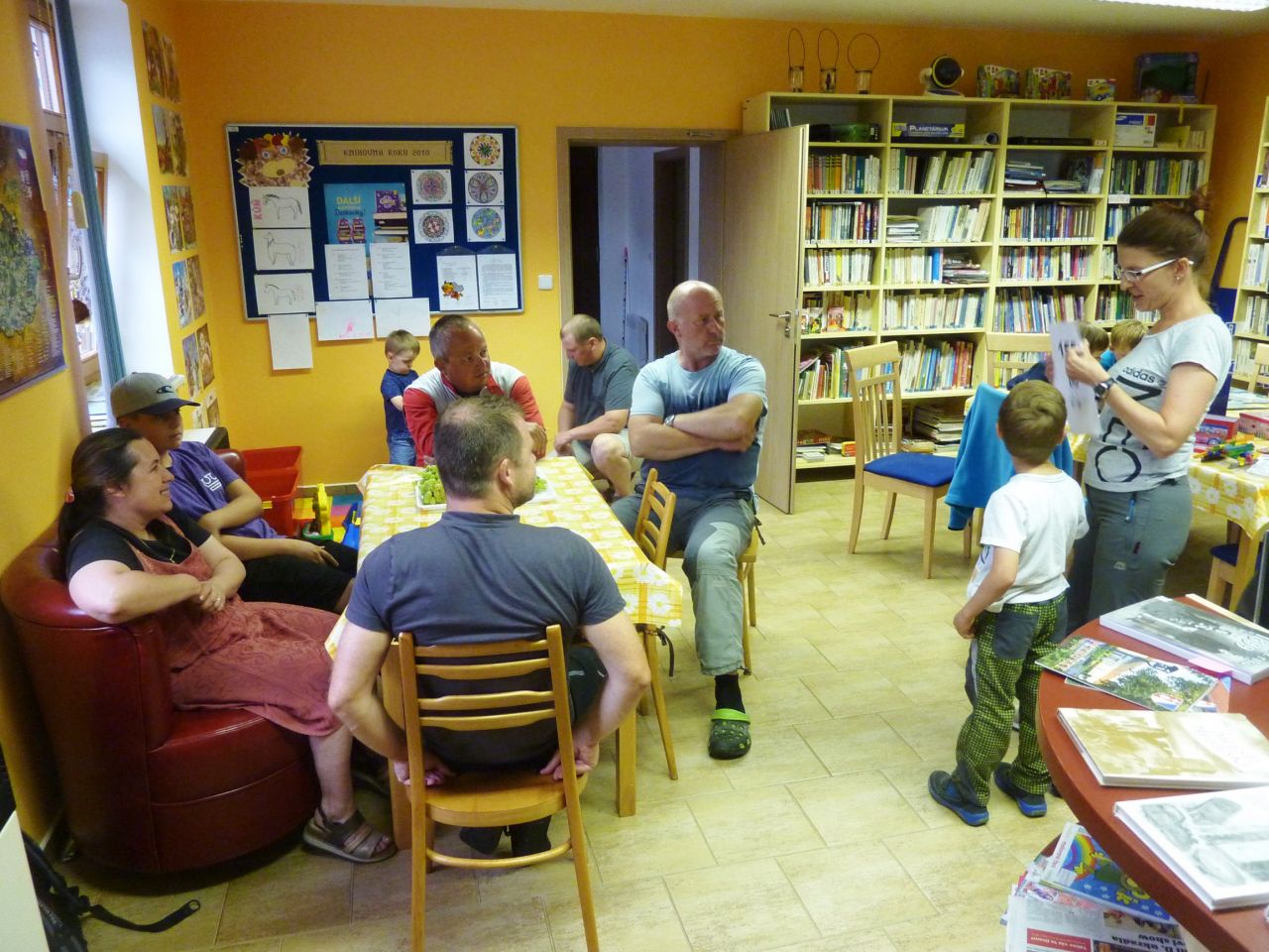 Díky deštivému počasí se první část programu uskutečnila v knihovně. Paní doktorka Jana Šlapáková seznámila děti (i dospělé) se základy první pomoci formou modelových situací, které předvedla spolu se svým malým asistentem Matýskem. Poté měly děti za úkol namalovat obrázek libovolného zvířete a z výkresů vznikla malá výstavka. K občerstvení bylo připraveno čerstvé ovoce, různé sladkosti a limonády. Venku u ohně si každý z účastníků mohl opéct výbornou klobásku. Ve dvoře pak probíhaly nejrůznější aktivity jako například malování křídami, slalom na kolech nebo malý fotbálek. Nejmenší děti se mohly vyřádit na nových houpadlech. Ve finále hledaly všechny děti ty správné klíče k zamčenému pokladu, což se jim nakonec podařilo. A jak je vidět z fotografií, zábavné odpoledne ke Dni dětí se vydařilo i navzdory uplakanému počasí. J.K.