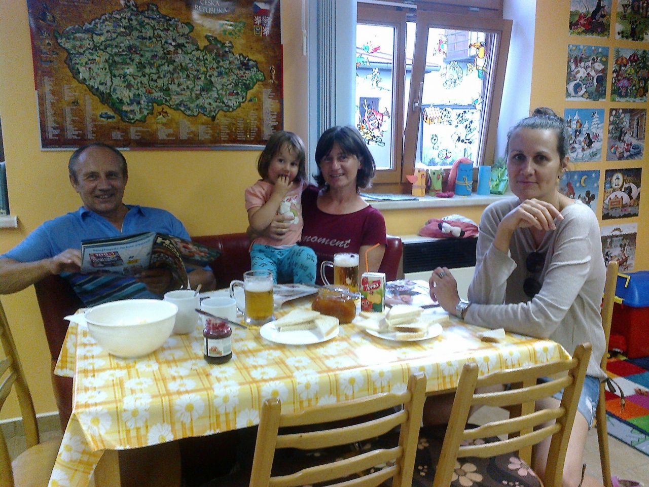 Po návratu do knihovny čekalo na děti občerstvení v podobě čerstvě upečené šunkové pizzy, kterou připravil pan hospodský. K ochutnání byla též domácí rakytníková a višňová marmeláda, k pití rakytníkový čaj s medem.