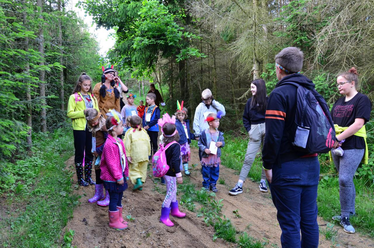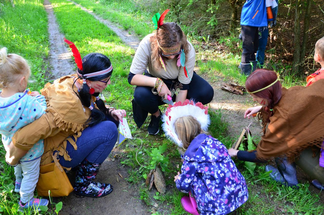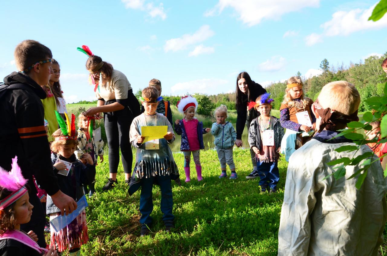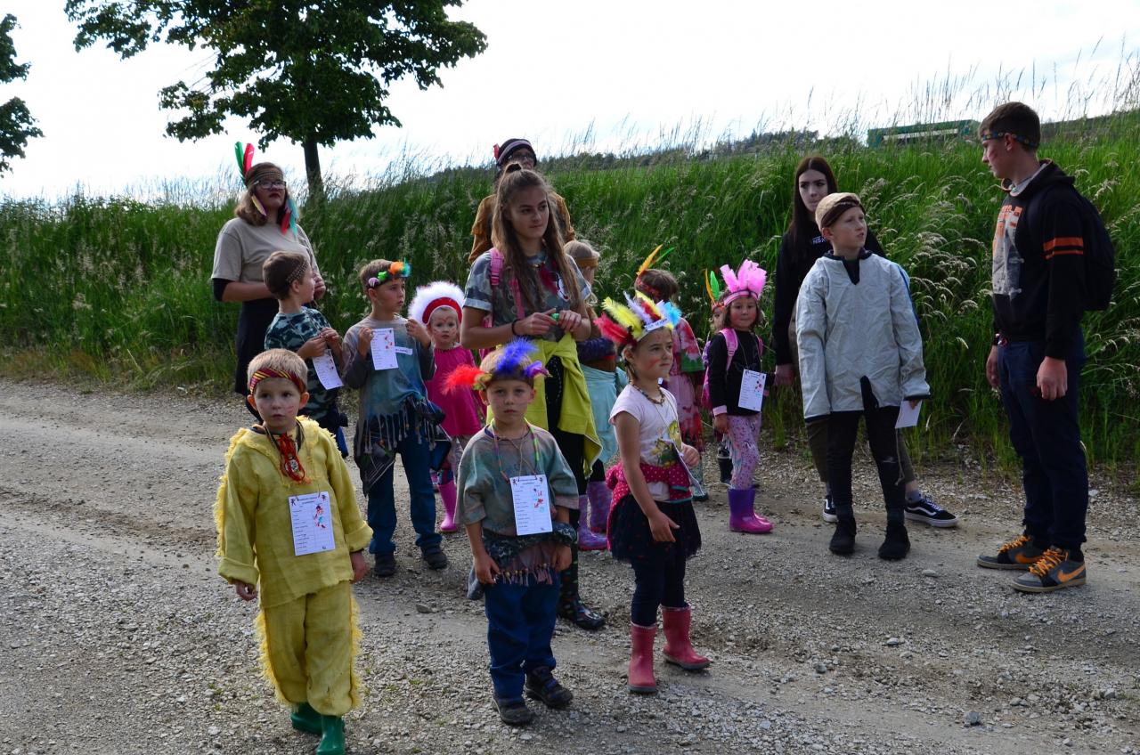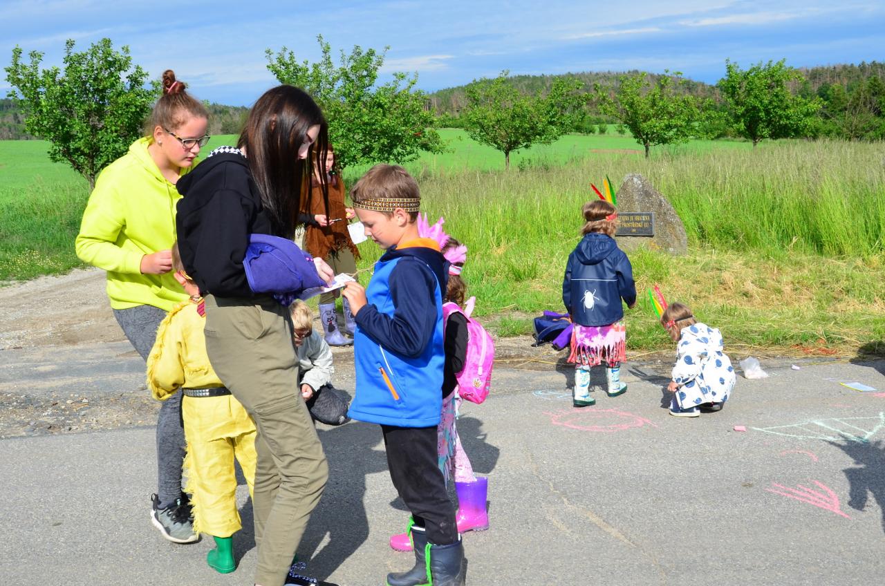 Místní indiáni Petrůkyjové se sešli před místní knihovnou. Tam už na ně čekal první úkol - hledání čísel na školním dvoře. Po indiánské poradě se vydali hledat vysněný poklad. Během celé trasy museli splnit několik úkolů.