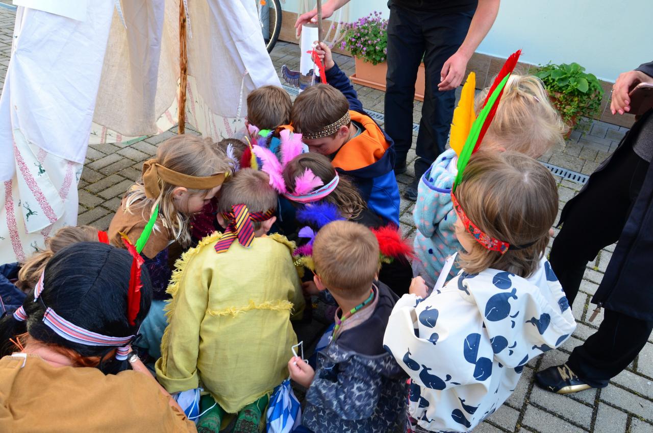 Za splněný úkol dostal každý indián barevné razítko do kartičky, kterou měl pověšenou na provázku na krku. Na konci trasy čekal na děti vysněný poklad. Na stromech byly zavěšeny barevné pytlíky ve kterých byly sladkosti. Pak následovalo poděkování slunci a hlasité halekání. Velkým překvapením byla truhlička schovaná ve vysoké trávě, kterou indiáni otevřeli až na školním dvoře. Bylo tam mnoho skleněných drahokamů a čokoládových mincí. Nakonec následovalo opékání bizona ve formě párků a volná zábava.