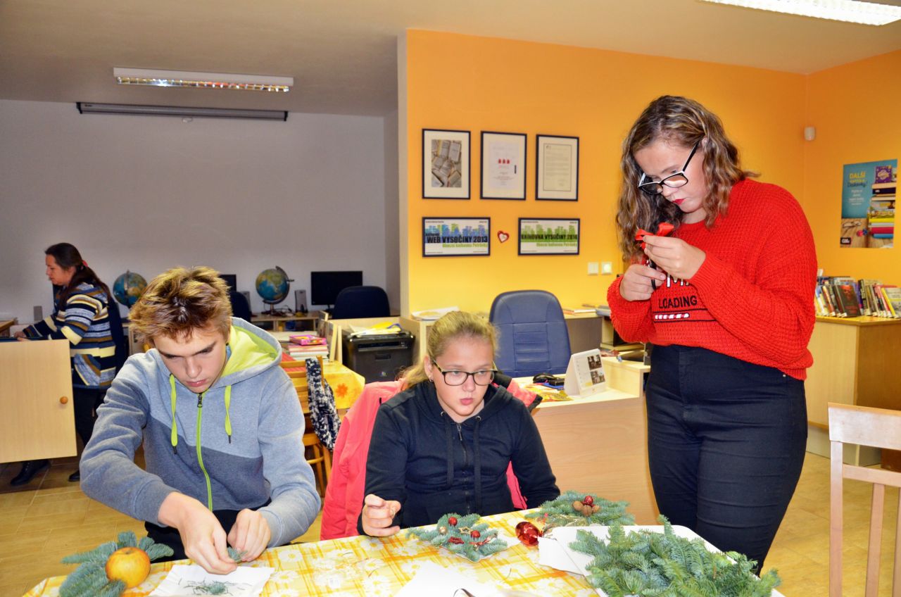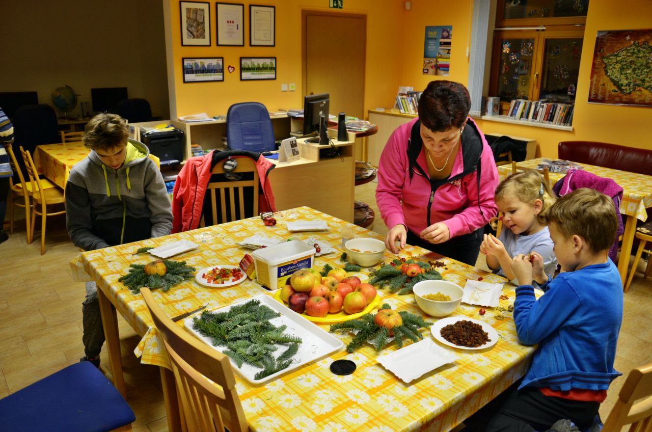 Předvánoční nálada provoněná jehličím provázela tvoření v místní knihovně. Vyráběly se především vánoční svícny z jablíček. Zajímavé originalní dekorace vznikaly za pomoci párátek, sušeného ovoce, vánočních ozdob, barevných mašlí, svíček, větviček, barevných papírů a dalšího různorodého materiálu. Děti svým elánem strhly k tvoření i mnohé maminky. Voňavé dekorace budou ozdobou každé domácnosti v průběhu adventu a vánočních svátků.